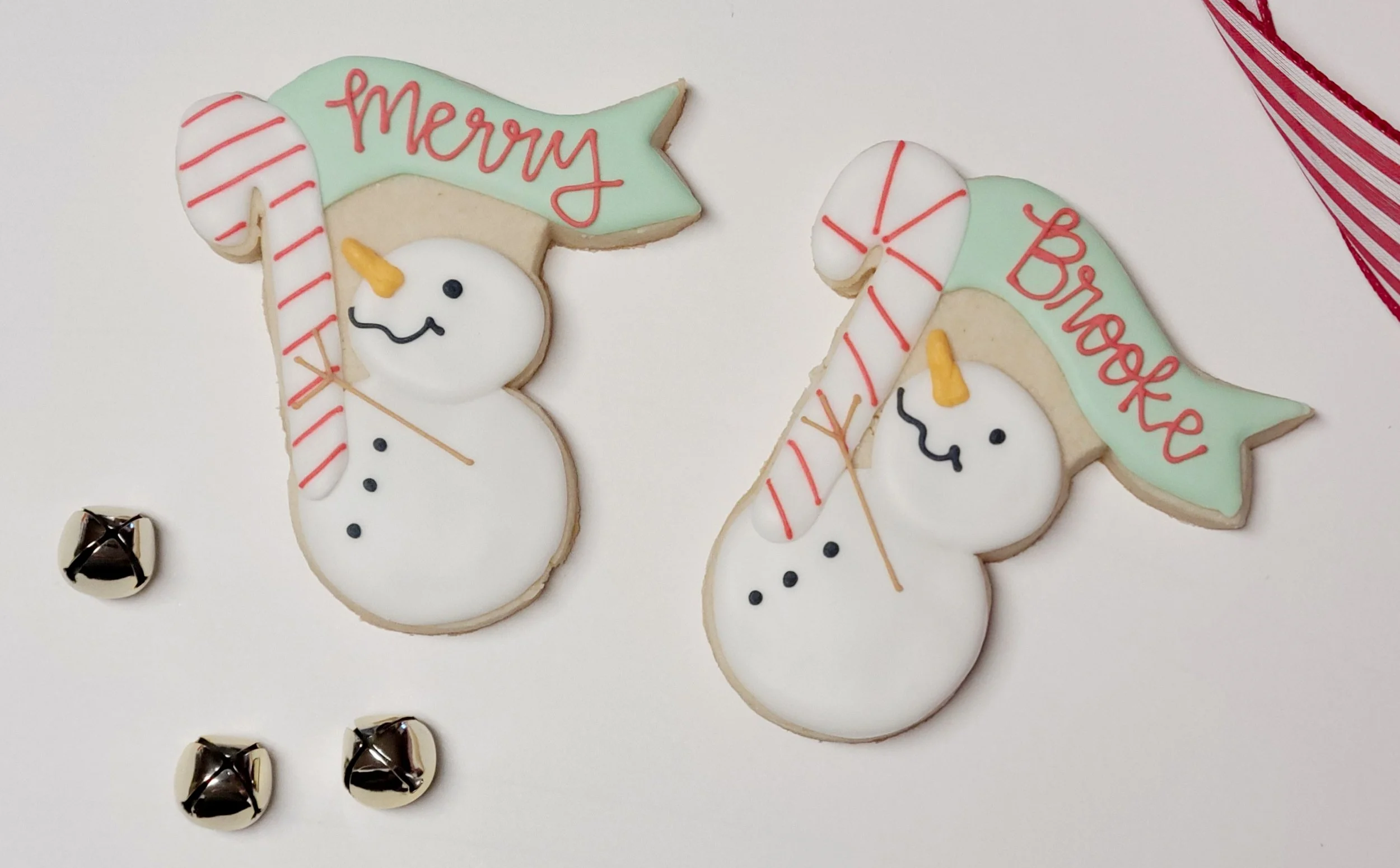 Single Snowman cookie, banner can be personalized with the name of a child, teacher, friend, “Merry Christmas”, etc. Be sure to include personalization details at checkout.